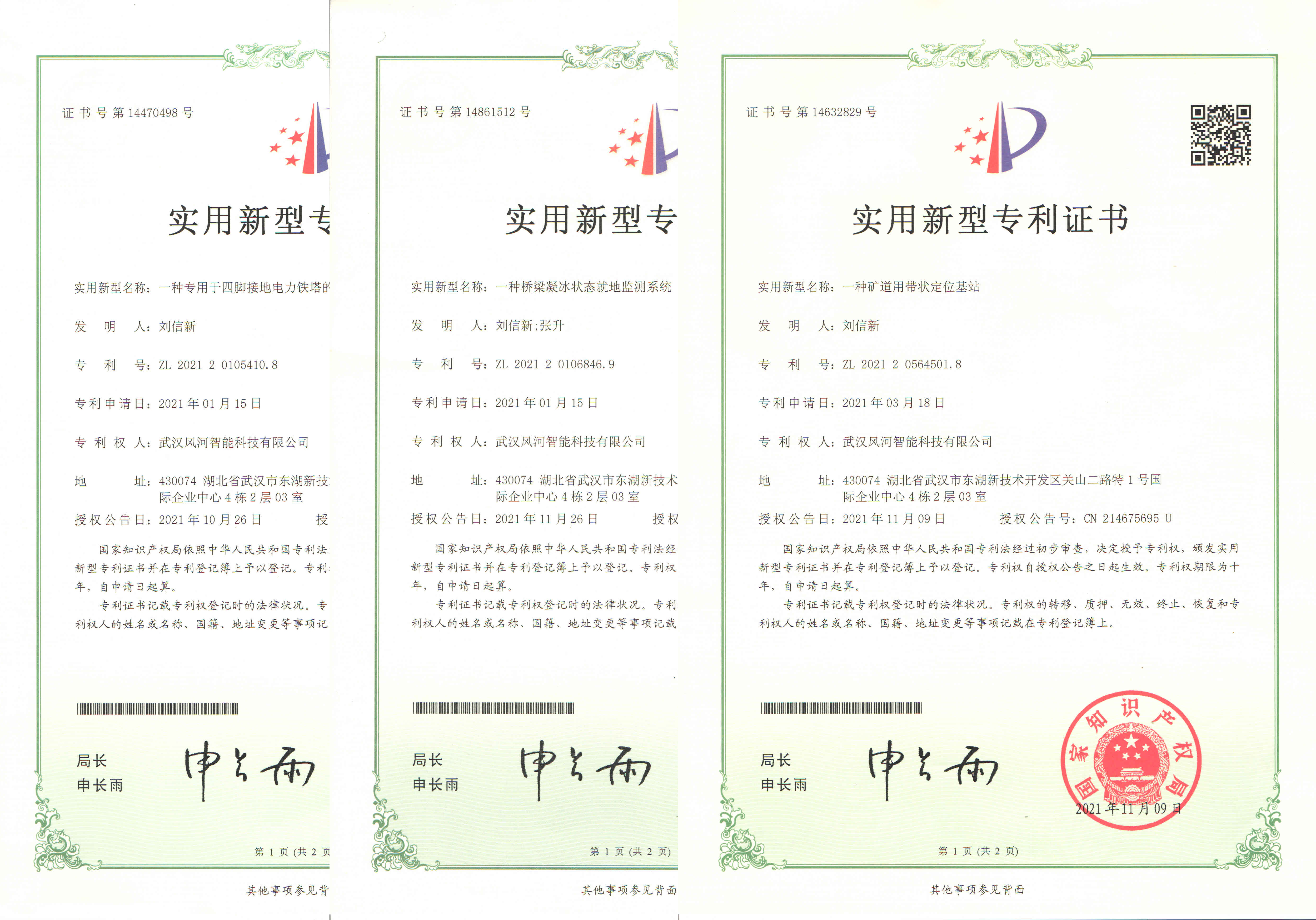 專利名稱:“一種專用于四腳接地電(diàn)力鐵(tiě)塔的多(duō)分支接地電(diàn)阻在線監測系統” 專利号:ZL 2021 2 0105410.8 專利名稱:“一種橋梁凝冰狀态就地監測系統” 專利号:ZL 2021 2 0106846.9 專利名稱:“一種礦道(dào)用帶狀定位基站” 專利号:ZL 2021 2 0564501.8